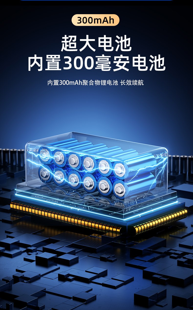 দীর্ঘস্থায়ী সহনশীলতার জন্য অন্তর্নির্মিত 300mAh ব্যাটারি এবং 300mAh পলিমার লিথিয়াম ব্যাটারি সহ 12.300mAh আল্ট্রা বড় ব্যাটারি