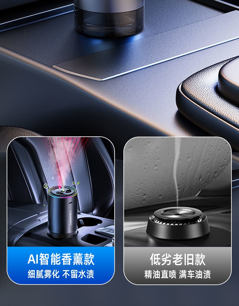 2. তুলনা (এআই ইন্টেলিজেন্ট অ্যারোমাথেরাপি মডেল যাতে জলের দাগ ছাড়াই সূক্ষ্ম অ্যাটোমাইজেশন থাকে) (নিকৃষ্ট পুরানো মডেল যাতে তেলের দাগ সহ গাড়িতে সরাসরি প্রয়োজনীয় তেল স্প্রে করা হয়)